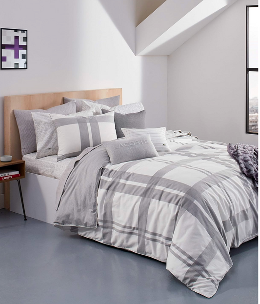 Lacoste Baseline Duvet Set, Full/Queen 100% Cotton 3 Pieces Bed Set Plaid