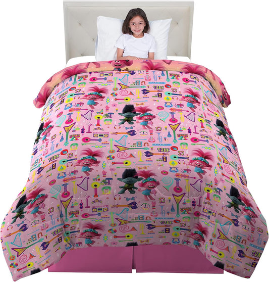 Trolls World Tour Twin Reversible Comforter Kids Bedding Rainbow