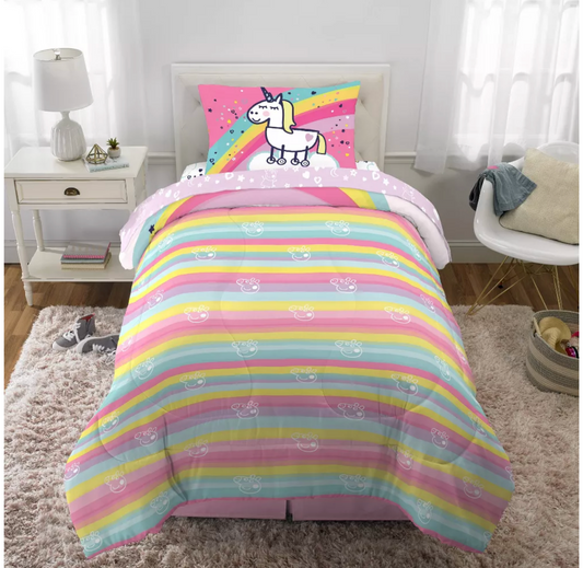 Twin Peppa Pig Rainbow Dreamer Reversible Kids' Bedding 4 Pieces Comforter Set