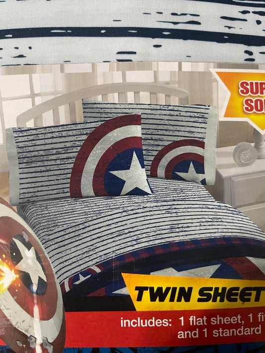 Captain America Emblem Shield Twin Sheet Set Kids Bedding
