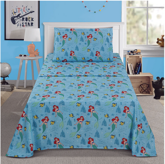 Ariel Little Mermaid Twin Size Sheet Set 3 Pieces Kids Set