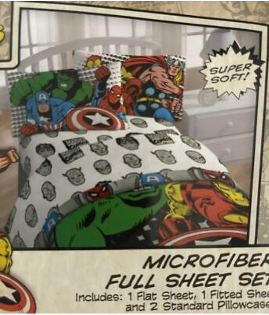 Marvel Avengers Comics Full Sheet Set 4 Pieces Kids Bedding