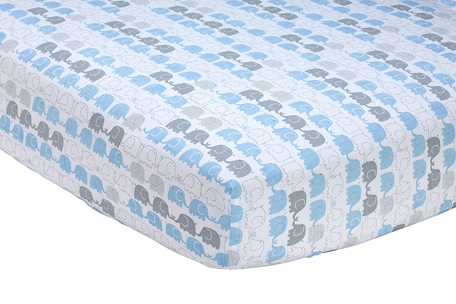 Zutano Elefant Blau Crib Sheet, White/Blue/Grey, 52" x 28" x 8"