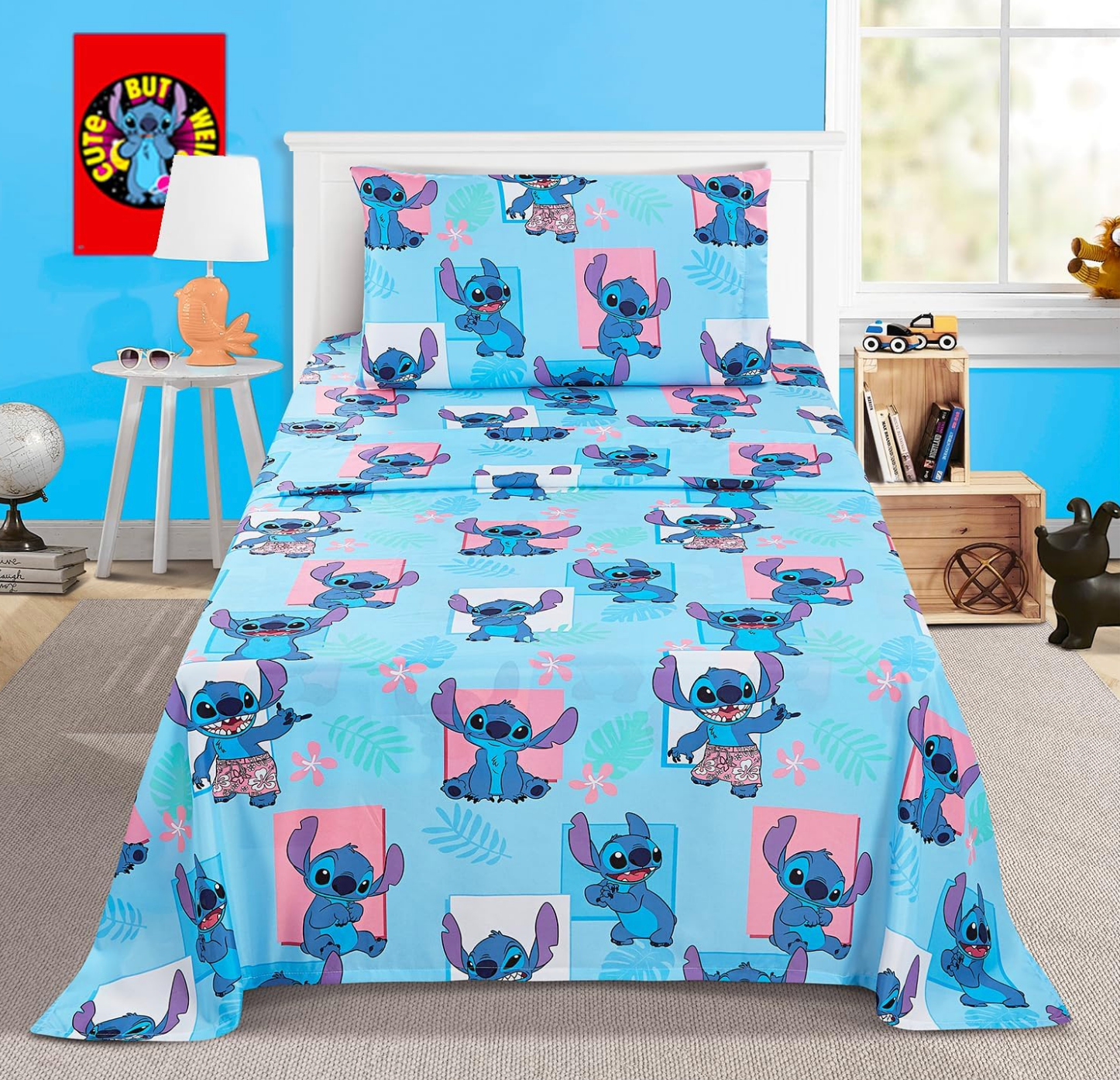 Lilo and Stitch Twin Bedding Bedspread, Flat Sheet, Fitted Sheet Pillowcase 4 Pieces Set