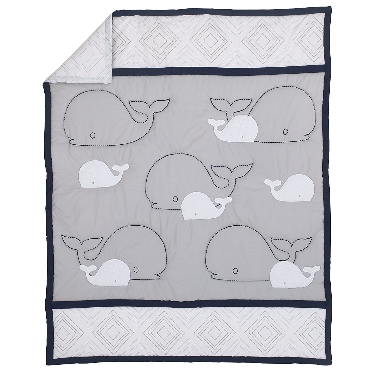 Nautica Kids Nursery Separates Appliqued Whale Crib Size Comforter, Gray/Navy/White