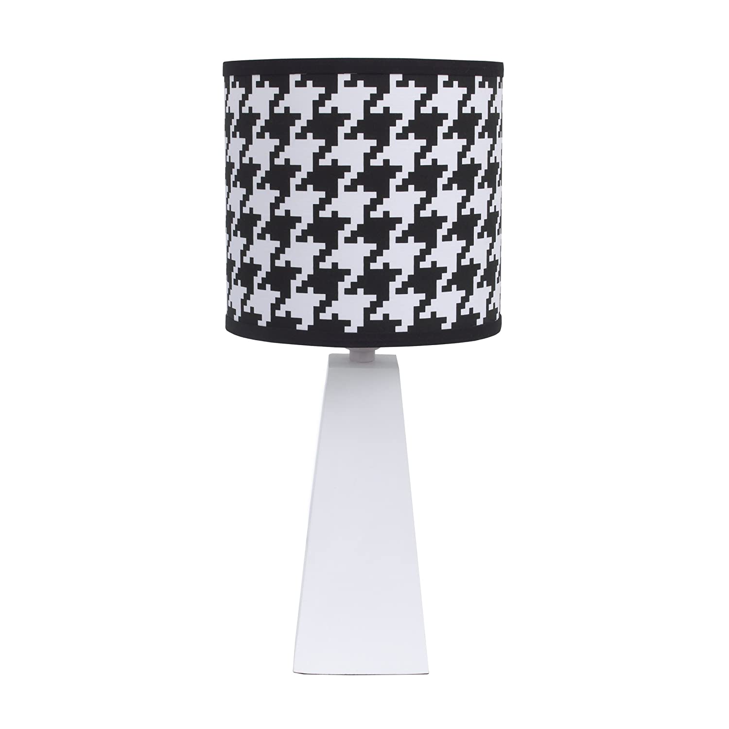 - Includes black and white Hounds tooth patterned shade, trimmed in black on a modern shaped white resin base.